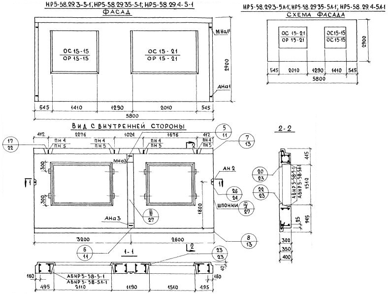НР5-58.29.3-5л-1 Наружная стеновая панель рядовая по Серии 1.132-1.