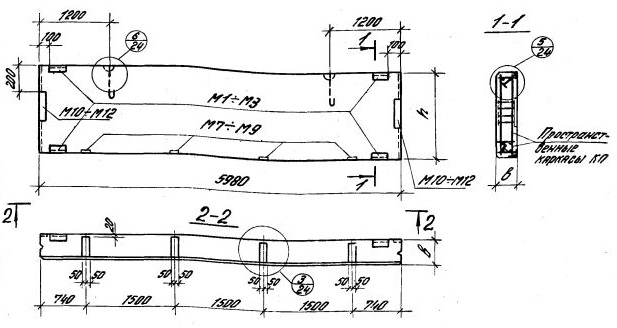 ПС 600.18.25-я-9   Парапетная панель-перемычка при простенках длиной 1,5м.