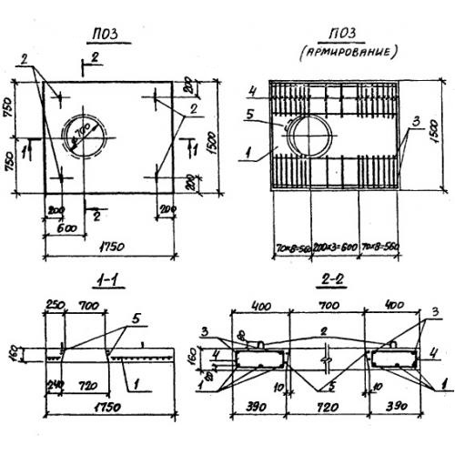 ПО 3 Плиты перекрытия лотков с отверстием Серия 3.006.1-2/82.